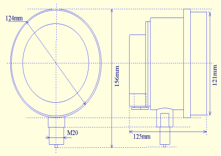 儀表使用干式陶瓷壓力傳感器,對安裝的角度無要求。儀表壓力導入口使用M20的外羅紋和壓力容器相連接,也可定制其他類型的連接接口。儀表外型尺寸見其它章節。